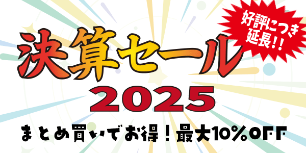 最大10%OFFの決算セール2025を10月13日(月・祝)まで延長いたします。まとめ買いでお得!どうぞご利用ください!!